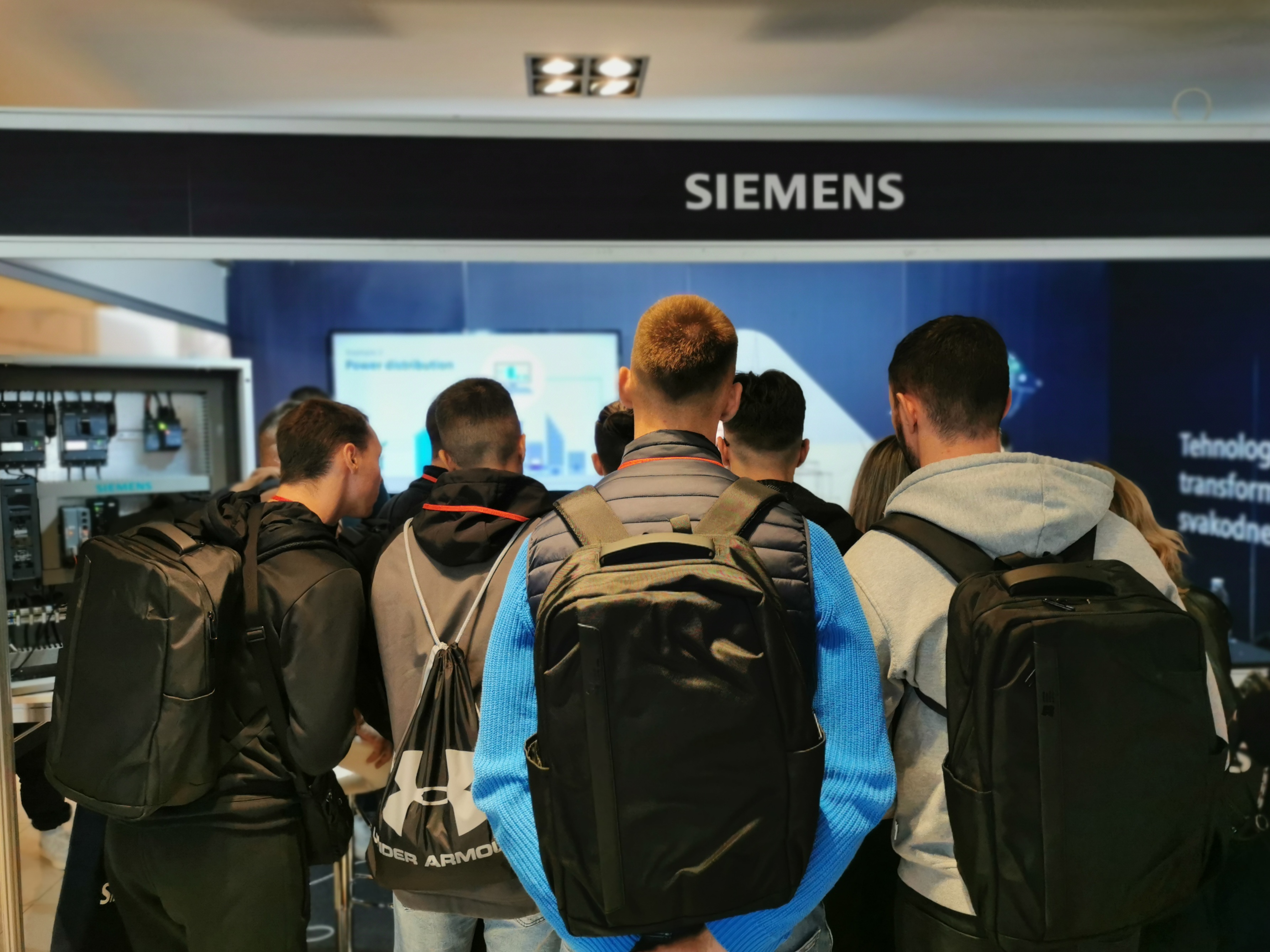 As part of the visit, the students toured the exhibition area and promotional stands of renowned domestic and international companies, including OBO Bettermann, Siemens, Schneider Electric, ETI, Končar, and Vertiv. During the tour, they had the opportunity to engage directly with industry representatives, learn about the latest technological solutions and products, and gain insight into potential employment opportunities.