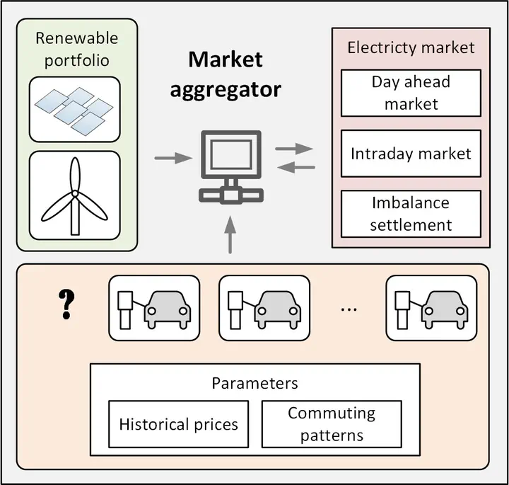 The expected increase in the presence of electric vehicles raises numerous questions regarding their impact on the market relations. Depending on the agreement between the involved parties, the position of EVs changes from passive (traditional role) to active. Active EVs are beneficial for variability and uncertainty- intense modern power systems. To enable this transition, a suitable framework in the form of agreements is required in order to establish the terms and responsibilities. Following the presented agreements, we propose a novel method for evaluation of the benefits that the newly added EVs bring to the portfolio. The method comprises two steps, a Monte Carlo simulation of the EV driving/charging patterns and an optimization model for market related decision making. The method results in the estimates on economic savings resulting from adding EVs to portfolios. An illustrative example is used in order to give an idea of the range of the benefits.